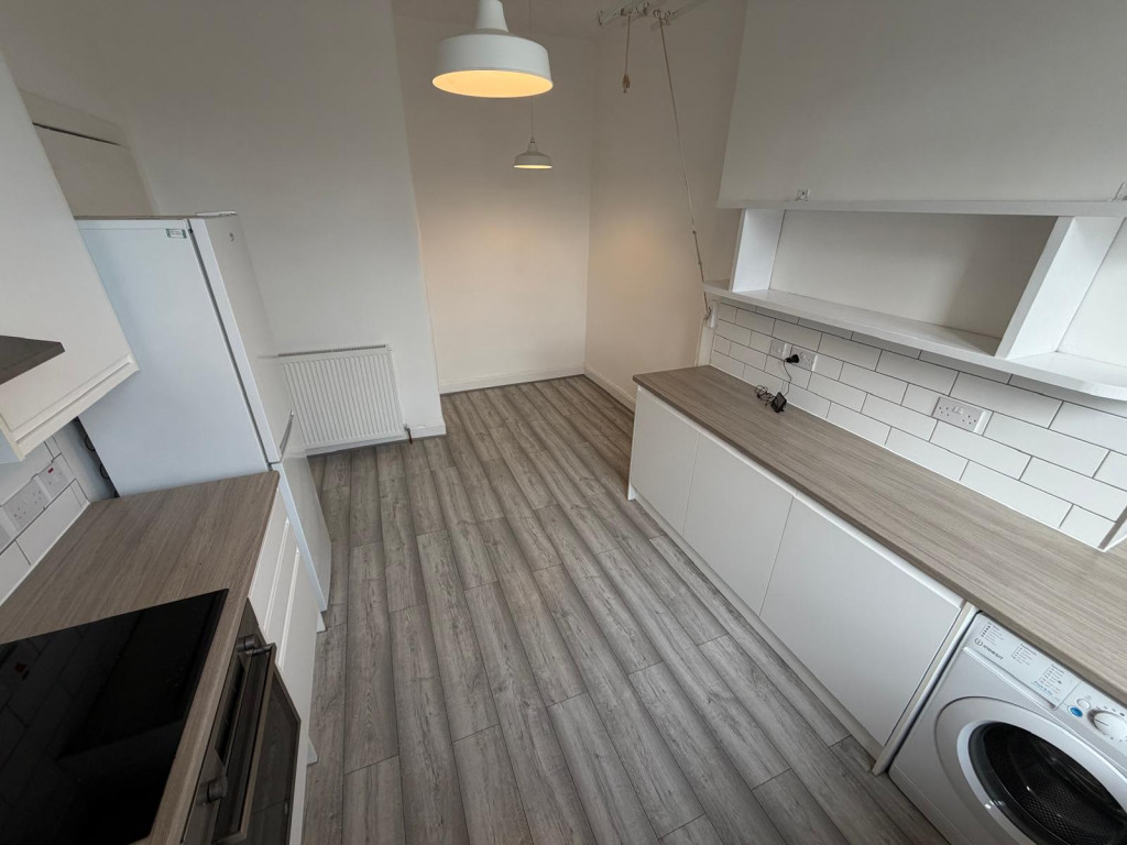 This fresh traditional yet modern renovated apartment boasts a spacious lounge with lots of natural light coming in from large double glazed bay windows, a recently fitted dining kitchen and a modern bathroom, two double bedrooms, flooring throughout the property including vinyl flooring and carpets in both bedrooms. The dining kitchen features an induction hob, integrated oven with an overhead extractor fan, a large fridge-freezer, lots of cupboard space and shelves, as well as a traditional clothes pulley.