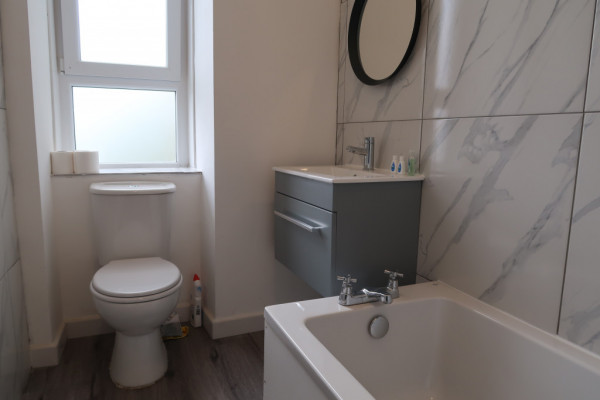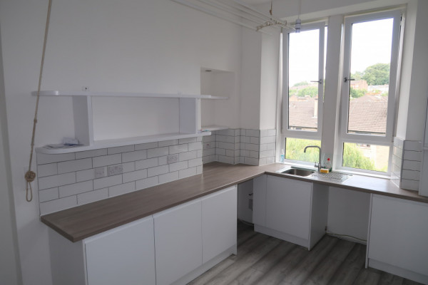 This fresh traditional yet modern renovated apartment boasts a spacious lounge with lots of natural light coming in from large double glazed bay windows, a recently fitted dining kitchen and a modern bathroom, two double bedrooms, flooring throughout the property including vinyl flooring and carpets in both bedrooms. The dining kitchen features an induction hob, integrated oven with an overhead extractor fan, a large fridge-freezer, lots of cupboard space and shelves, as well as a traditional clothes pulley.
