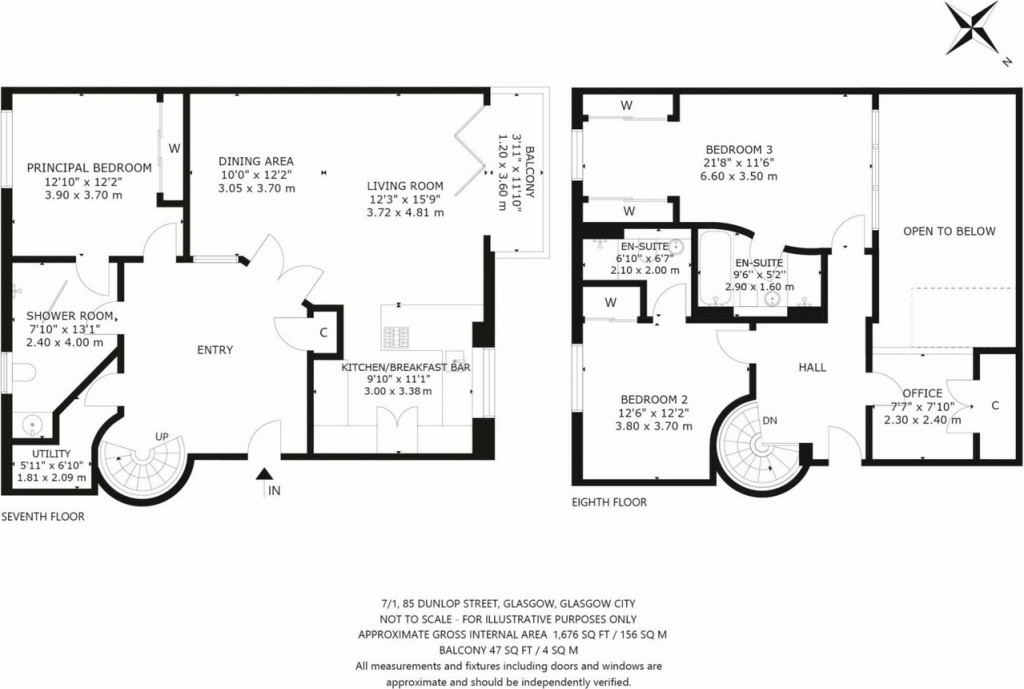 This stunning three-bedroom penthouse duplex apartment comprises of a reception hallway leading to the lounge/dining area with open plan modern fitted breakfasting kitchen boasting the top of the range integrated appliances and gadgets, with floor to ceiling windows this area is bright and spacious, giving access out to the balcony offering an extra space to unwind, relax and take in the views over the City/River Clyde, the lounge features bio-oil living flame fire. The entrance hallway features an Iron and wood spiral staircase leading to the upper level. Also situated on the ground level is a spacious double bedroom with built in wardrobes and Jack & Jill access to the main bathroom. The main bathroom is impressive with the layout and modern suite complimented by tasteful floor to ceiling tiles. Sits on the seventh and eighth floors of The Metropole, a highly sought-after building in the heart of Glasgow City Centre, with lift access and a private balcony boasting superb views of the River Clyde. Plus, there are two secure private parking spaces, each with an EV charger.