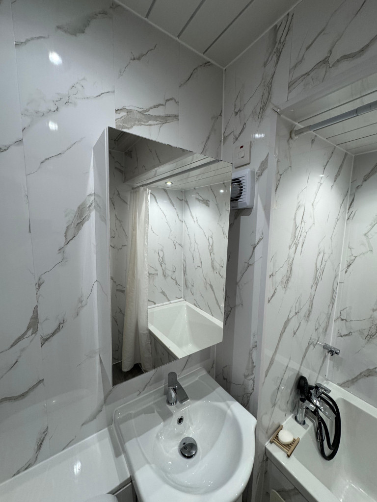 The property comprises of reception hallway, open plan lounge/kitchen area, one bedroom and full wet wall bathroom with shower over bath.
